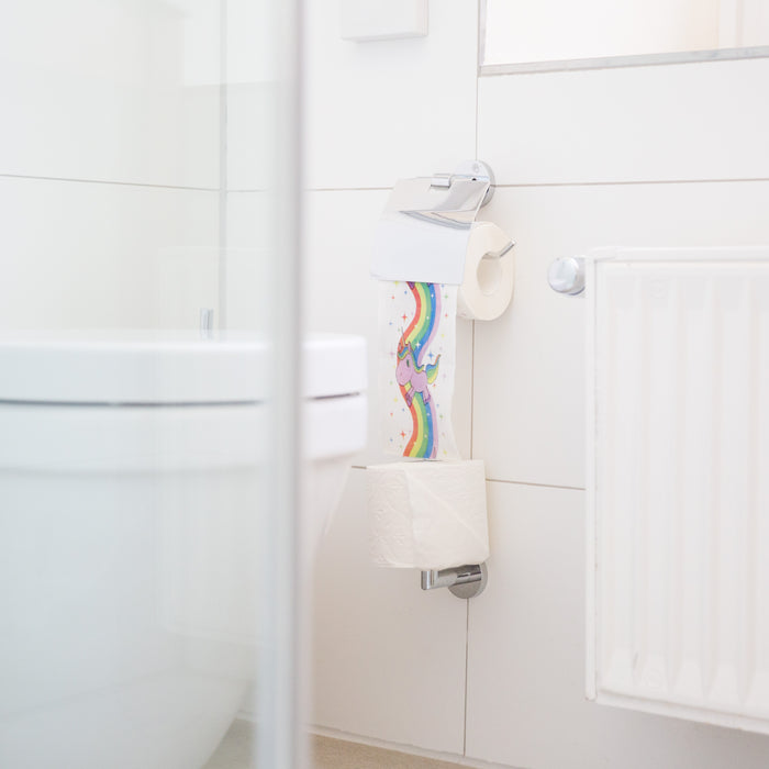 The faction in our company that consists of self-confessed unicorn fans has set itself the goal of filling every last square inch of our everyday lives with the fluffy mythical creatures. Shower curtains and doormats were just the beginning, now the unicorn minati are reaching for the rest of the home. The latest step in their diabolical plan: toilet paper. Yes, you read that right. Toilet paper.