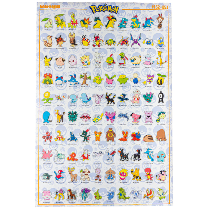 On the Pokémon poster, you finally have them all at a glance. You can choose between the Pokémon of the Kanto, Johto, Sinnoh or Hoenn region in German. Or you can simply take all four. Instead of the multiplication table or the periodic table, you can now decorate your living room with these posters and memorize all the names and numbers. Who knows when you'll need this knowledge...