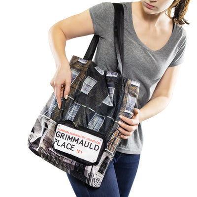 Ähnliches kann die Harry-Potter-Einkaufstasche "Grimmauld Place" leisten: Diese geräumige Tragetasche, die dem eben genannten Haus nachempfunden ist, kannst Du platzsparend in sich selbst verstauen! Ja, das hast Du richtig verstanden: Einfach die Tasche zusammenfalten, Reißverschluss zuziehen und staunen, dass nur noch das Straßenschild zu sehen ist!