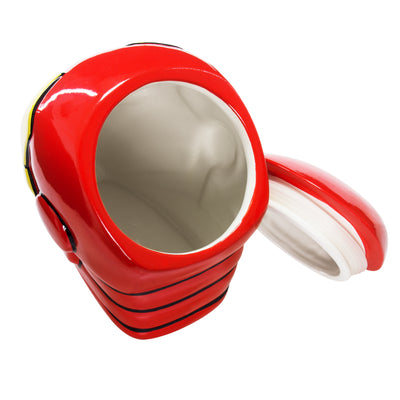 Es gibt allerdings eine Sache, bei der unser in Deutschland ursprünglich "Der Eiserne" genannte Held keinen Spaß versteht: Keksdiebe. Solltest Du des Öfteren mit hungrigen Langfingern Probleme haben, wird die Iron Man Keksdose Abhilfe schaffen. Um Deine Leckereien zu schützen, lässt Tony Stark Ultron, Loki und Thanos links liegen und schickt Dir seinen Helm als neuen Naschtresor. Diese spezielle Version besteht aus Keramik und bietet ausreichend Platz für eine gehörige Portion an Süßigkeiten oder anderen Dingen. Falls der einschüchternde Blick Iron Mans nicht ausreicht, um Dein Hab und Gut zu beschützen, so wird der Deckel die im Hinterkopf befindliche Öffnung nahtlos abschließen. Das süße Geheimnis im Inneren wird somit vor allen neugierigen Augen versteckt sein.