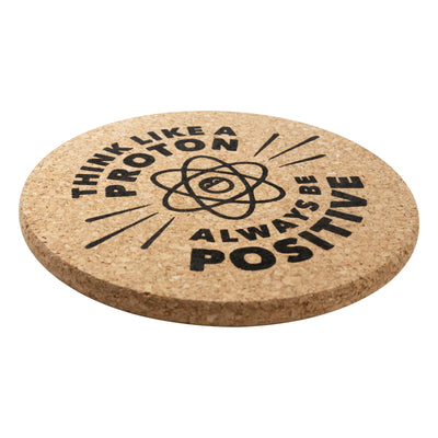 Vielleicht inspiriert das Proton dich ja in Form des Topfuntersetzers „Think Like a Proton“, es ihm gleichzutun. ;) Der Untersetzer aus Kork begleitet dich mit positiven Vibes beim Kochen und schützt deine Oberflächen for heißen Töpfen, Pfannen und Auflaufformen.
