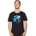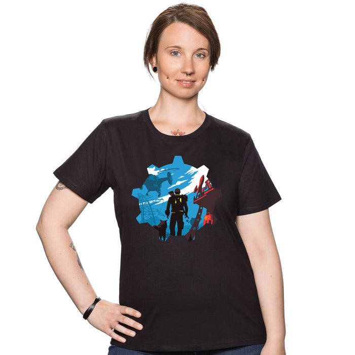 La camiseta "El Errante Solitario" toma su nombre y retoma el icónico "Errante Solitario" de "Fallout 3", el tercer título principal de la serie, que salió a la venta en 2008. La silueta del Errante, acompañado de un perro igualmente solitario, se encuentra frente a un paisaje de edificios en ruinas y un helicóptero militar: el entorno hostil que rodea la Bóveda 101, que refleja el antiguo Washington D.C..