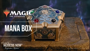 La Caja Premium de Cartas Magic: The Gathering en Diseño de Maná es un estuche de forma hexagonal hecho de resina con elaborada decoración en negro y oro y cinco imitaciones de piedras semipreciosas de colores en la tapa extraíble – una para cada tipo de maná. Hecha a mano y pintada a mano, ¡también es perfecta para guardar dados, contadores o ese único mazo que solo juegas en ocasiones especiales!