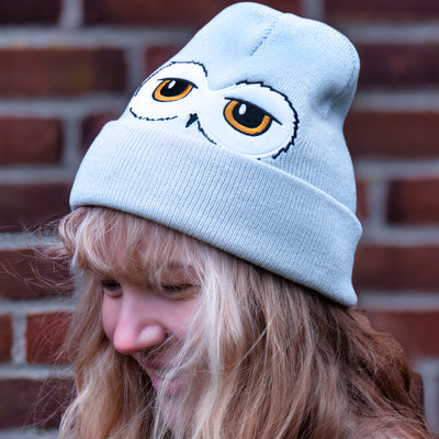 • Helles Beanie mit dem Gesicht der Eule Hedwig aus Harry Potter