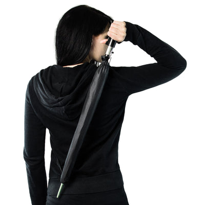 Gracias a la automática, el paraguas se abre con solo presionar un botón. Si el clima es bueno, se puede guardar fácilmente en la bolsa de nailon correspondiente y llevarlo sobre el hombro, de modo que siempre tengas las manos libres para el combate cuerpo a cuerpo. ;)