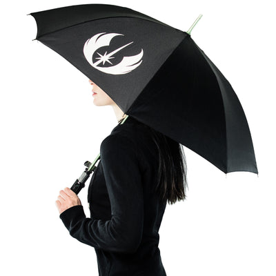 De acuerdo, admito que es menos el clima y más el lado oscuro lo que molesta a los Jedis. Sin embargo, no siempre es fácil mantener el buen humor bajo la lluvia desagradable. Este paraguas con el diseño del sable de luz de Yoda te infunde nuevo valor. El mango muestra todos los detalles del original, el eje en sí está anodizado en verde y representa la hoja una vez que el paraguas está abierto. En el exterior del paraguas se puede ver dos veces el emblema plateado de la Orden Jedi.