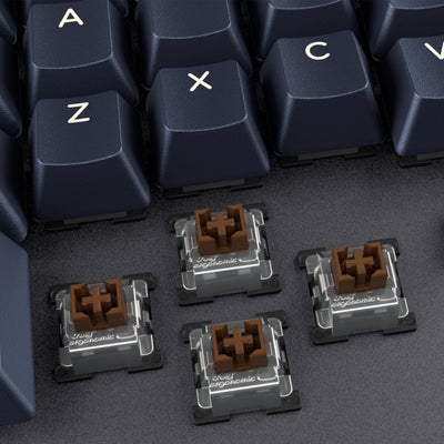 Los botones y los interruptores son con el removedor cerrado fácilmente intercambiable. Hay cuatro interruptores y llaves cada uno como reemplazo. Además, las teclas son compatibles con las tapas de montaje cruzado de cerezo mx común.