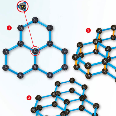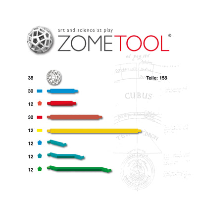 Das Zometool Konstruktionssystem wird zur Nachbildung und Veranschaulichung von Strukturen aus der Chemie, Biologie, und Physik genutzt. Dabei ist es für Wissenschaftler:innen jedes Alters geeignet, auch für Kinder. Herzstück des brillanten Stecksystems ist die Verbindungskugel, die viele Öffnungen in insgesamt drei verschiedenen Formen hat. An diese Basis lassen sich verschieden lange Stäbe setzen.