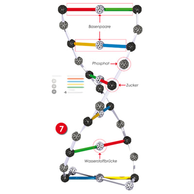DNADNA (Deutsch: DNS) verbindet alle Lebewesen auf diesem Planeten. Schön und elegant, einfach und kraftvoll: Das ist, was alle Lebewesen auf diesem Planeten verbindet. Dieser „Baustein des Lebens“ kann mithilfe dieses Zometool Bausatzes mit 71 Teilen erforscht werden.