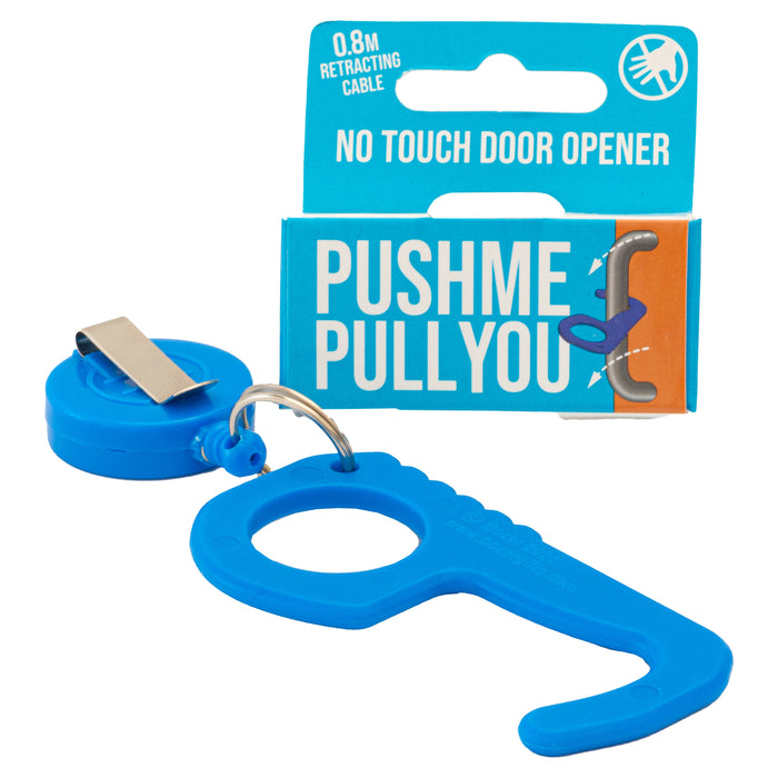Pour que tu n'aies plus à les toucher et que tu puisses ainsi épargner à tes mains le désinfectant desséchant, il existe un ouvre-porte sans contact très pratique. Fixé à la ceinture ou au pantalon, tu auras toujours un crochet que tu pourras accrocher à la poignée ou au loquet pour ouvrir la porte. La laisse extensible de 80 cm t'offre une liberté de mouvement maximale.