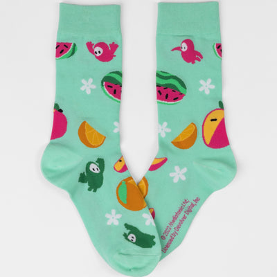 Und mindestens genauso viel Spaß machen die Fall Guys Socken Tutti Frutti mit ihren knalligen Farben. Darauf schweben die niedlichen Spielfiguren durch die übergroßen Früchte, die zwar lecker aussehen, in vielen Leveln aber verhängnisvolle Hindernisse darstellen. Wird man von ihnen ausgeknockt, ist das äußerst unangenehm. Die Socken dagegen sind durch ihren hohen Baumwollanteil dagegen besonders angenehm zu tragen. Sie halten deine Füße schön warm, egal ob du dich durch deinen stressigen Alltag wurschtelst oder entspannt auf der Couch liegst.