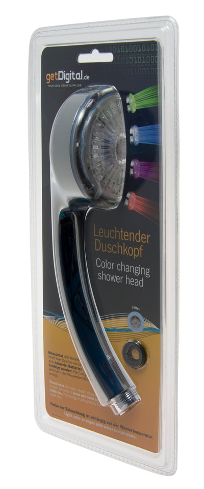 Avec le Faucet Light, tu peux déjà faire briller ton robinet en fonction de la température, mais tu obtiendras un effet encore plus impressionnant avec ce pommeau de douche, qui éclaire le jet d'eau de ta douche grâce à des LED intégrées. L'éclairage se fait de telle manière que la lumière se propage comme dans une fibre optique à travers le jet d'eau, créant ainsi un effet fascinant.