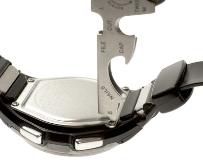 • Outil de poche 8 en 1 qui peut être fixé à une clé ; avec 8 fonctions et mousqueton.