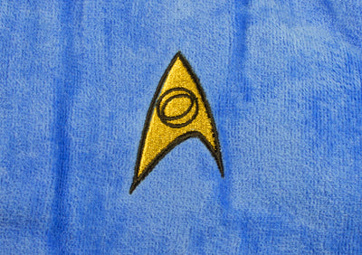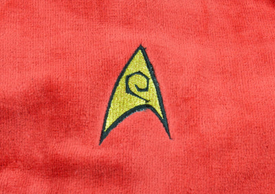 Mais maintenant, quelques mots sur les peignoirs Star Trek en eux-mêmes : ils sont de très bonne qualité et disposent de deux poches qui peuvent facilement contenir l'un ou l'autre tricordeur, ainsi qu'une ceinture. Ils sont disponibles dans une taille universelle qui devrait convenir à tout le monde - sauf peut-être à la Ltd Uhura. Bien sûr, ils ont aussi des insignes brodés sur la poitrine et les manches, comme les vrais uniformes originaux.