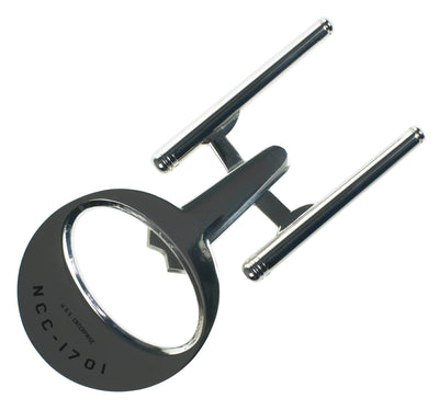 En regardant l'ouvre-bouteille Star Trek en forme d'USS Enterprise, on se demande pourquoi personne n'a eu l'idée d'utiliser le vaisseau spatial culte à cette fin. L'encoche dans la soucoupe est parfaite pour les bouteilles et les nacelles sont une prise optimale.