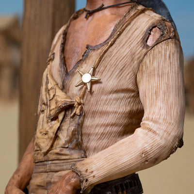 Pour les fans de l'espiègle Terence Hill, il y a maintenant une surprise spéciale : la série sous licence officielle Figurine à collectionner Terence Hill Limited Edition Il n'y a que 500 exemplaires et pour une bonne raison. En effet, la figurine extrêmement détaillée en résine est presque photoréaliste : du tissu de la chemise roussie de Hill aux veines de son bras bronzé, en passant par les détails de l'étui du pistolet, tout est reproduit dans les moindres détails de l'original. Sans parler de la taille impressionnante de la figurine, puisqu'elle mesure environ 36 cm. Le trublion aux yeux bleus se trouve sur une base de diorama western également très détaillée, qui assure une bonne stabilité et un arrière-plan approprié.
