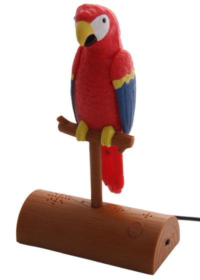 Le perroquet USB se comporte exactement comme un vrai perroquet : il peut se souvenir de ce que tu as dit et le répète ensuite. Et comme avec un vrai perroquet, le moment où le langage enregistré est restitué est aléatoire. Donc, tu devrais faire attention à ce que tu dis si tu ne veux pas insulter ta belle-mère.