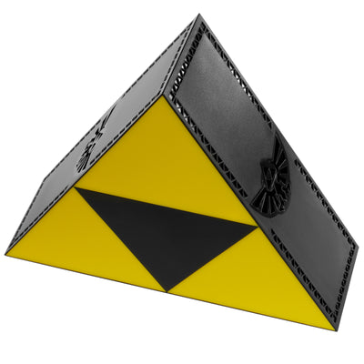 Après des efforts presque infinis, nous avons réussi à restaurer la Triforce pour satisfaire ton désir d'avoir plus d'Hyrule dans ta vie quotidienne. Le résultat : la lumière Triforce Zelda. Avec ce bijou, tu peux non seulement exprimer ton amour pour les jeux vidéo, mais en même temps apporter de la lumière dans la grotte la plus sombre. Les parties latérales décorées d'ornements et de l'écusson d'Hyrule sont un régal pour les yeux en soi, mais la vraie surprise t'attend lorsque tu alimentes la Triforce via le câble micro-USB inclus ou trois piles AAA (non incluses) : les trois parties de la Triforce s'allument et l'écusson est projeté sur les murs à gauche et à droite de la lumière. Si tu en as assez de ce spectacle lumineux, il te suffit d'appuyer sur l'interrupteur situé à l'arrière, également en forme de triforce, et la lumière s'éteindra.