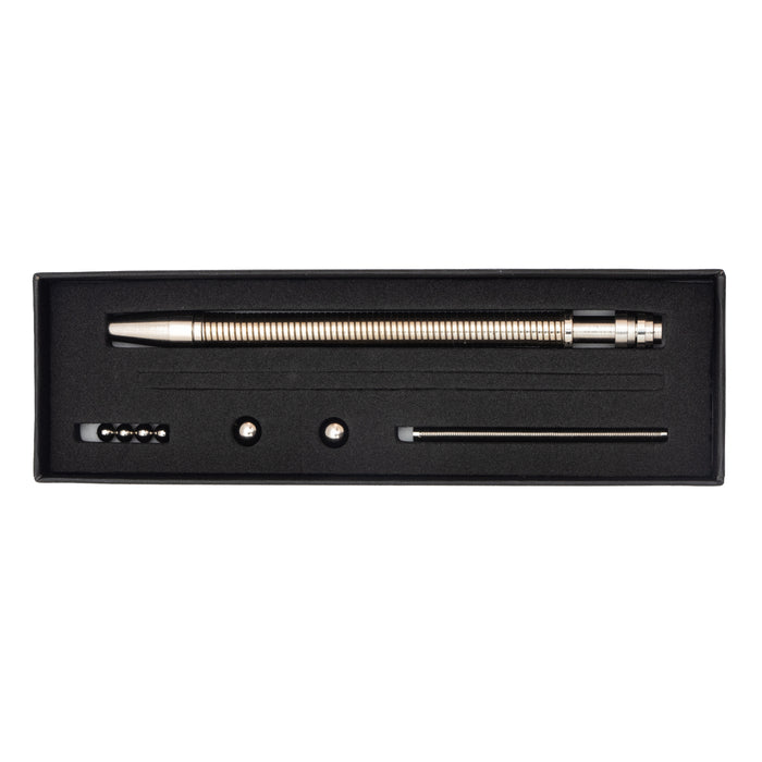 Le stylo fidget Think Ink arrive à point nommé dans ce genre de situation. Bien sûr, il peut simplement servir de stylo normal pour que tu puisses prendre des notes. Comme il est magnétique, il adhère à toutes les surfaces métalliques, tu ne peux donc pas le perdre facilement. Mais ce qui est le plus intéressant, c'est qu'il est composé de plusieurs parties qui occupent tes doigts. Les boules de différentes tailles et les pièces métalliques flexibles peuvent être pliées, déplacées dans tous les sens et assemblées ou désassemblées de différentes manières. Et ils sont si silencieux que tu ne dérangeras personne. Mais nous ne pouvons pas dire si tu attireras l'attention des autres dans la pièce et si tu distrairas tout le monde... ;)