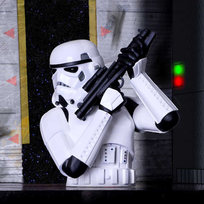 • Busto di uno Stormtrooper in armatura completa con arma da fuoco