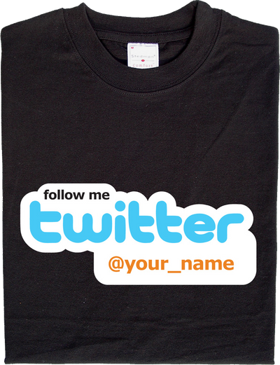 Con questa maglietta puoi pubblicizzare facilmente il tuo account Twitter offline, perché sostituiamo la scritta "@your_name" con il tuo nome Twitter. Ti preghiamo di inserirlo nel messaggio alla fine del processo d'ordine.
