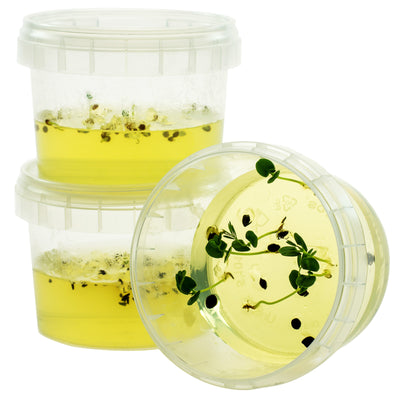 Alle Sets enthalten die nötigen Zutaten für das Gel, Pflanzgefäße, kleine Blumentöpfe, Torfkapseln und natürlich die Samen für ein langes Gärtnerglück.