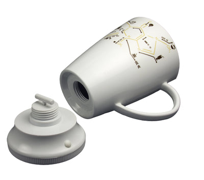 Con il tazza auto-miracolosa queste situazioni appartengono al passato, perché tutto ciò che devi fare dopo aver versato è premere un pulsante e, come per magia, il latte e il caffè si uniscono per formare un insieme armonioso. Mmmm... L'impronta molecola di caffeina non lascia dubbi sulla tua bevanda calda preferita! Ma anche altre bevande come il cacao, il KiBa o il Vodka-O si sentono a loro agio nella tazza auto-riflettente ;)