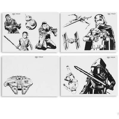 Il set contiene quattro fogli con un totale di 15 adesivi. I motivi includono astronavi, BB-8, Chewbacca, alcuni Stormtrooper e altro ancora. Puoi vedere esattamente cosa nelle foto. Puoi anche trovare una piccola ispirazione qui. Cinque degli adesivi sono bianchi e quindi adatti alle superfici scure. Per orientarsi: ogni foglio misura 15 x 21 cm. Gli adesivi sono trasparenti. Se prima o poi Kylo Ren dovesse finire su tutto il tuo tablet (cosa che non riusciamo a immaginare), potrai semplicemente rimuovere gli adesivi senza danneggiare la superficie. Ma attenzione: una volta rimossi, gli adesivi non possono essere riapplicati. Tra l'altro, i motivi sono altrettanto belli su tutte le altre superfici lisce ;)