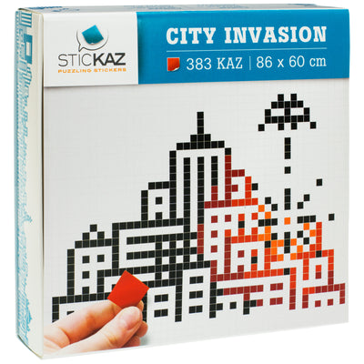 Con questo set puoi finalmente portare i tuoi pixel preferiti fuori dal computer e nel mondo reale. Tutto ciò che ti serve è una matita, un quadrato e gli adesivi murali Stickaz City Invasion.