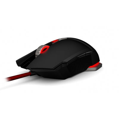 Met slechts 172 gram ligt de zwart-rode muis prettig en veilig in de hand van zowel links- als rechtshandigen, en door de rode LED's onder het scrollwiel, het logo op de rug en een lichtstrip aan de rand van de muis is het duidelijk dat dit geen gewone muis is. Naast de standaardknoppen die ontworpen zijn voor 20 miljoen klikken en een meerwegwiel, biedt de M50 maar liefst 9 programmeerbare macroknoppen, die zonder extra software tijdens het gebruik geprogrammeerd en in 6 verschillende profielen opgeslagen kunnen worden.