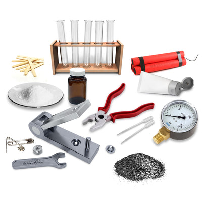 • Includes graphite powder, carbonyl iron, trinitrotoluene, test tubes, tools and a diamond press