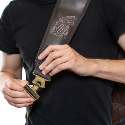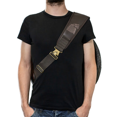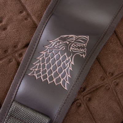 This high-quality rucksack is a detailed replica of a shield from the northernmost of the great houses. Hidden behind a zipper you will find two inner compartmentsand the "inside" of the shield is padded to ensure maximum comfort even on long marches. Speaking of comfort: the carrying strap of the shield can be conveniently opened using a buckle, so you don't have to awkwardly slip it over your head in dangerous situations. The shield is made of plastic rather than metal so that you don't break it on the way to work ;)