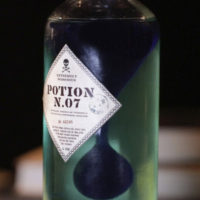 • Harry Potter lava lamp with the inscription "Potion No. 07" and a warning label