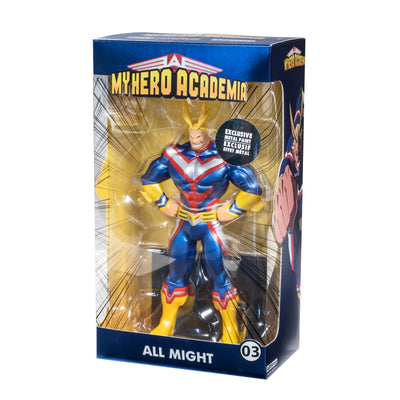 The My Hero Academia Metal Foil Collectible Figure "All Might" brings the most famous hero of all time to you as a detailed collectible figure: Every child knows All Might and wants to follow in his footsteps one day. However, hardly anyone knows that the radiant hero harbors a dark secret…