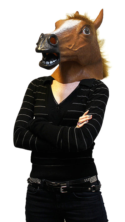 Or maybe you're a teacher and need the undivided attention of your pupils? With our horse mask (also known as a 'creepy horse mask'), you're sure to attract attention. Are you always particularly nervous when talking to the boss? The ponymorphic head disguise hides such feelings and your boss will love your new face!