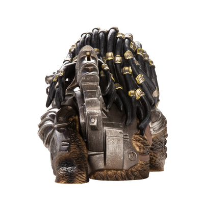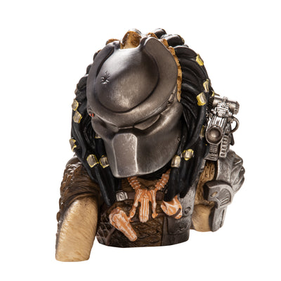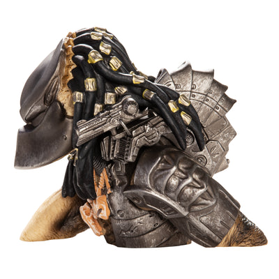 De gedetailleerde buste toont de Predator in al zijn angstaanjagende pracht - compleet met schouderkanon en masker. Via een gleuf aan de achterkant kun je de spaarpot met geld vullen, en via een met een deksel afgesloten opening aan de onderkant kan de Predator weer geleegd worden. We willen hierbij opmerken dat de spaarpot niet effectief is tegen Oostenrijkse spierbundels die zich met modder hebben ingesmeerd. ;)