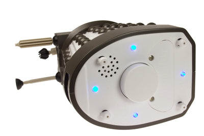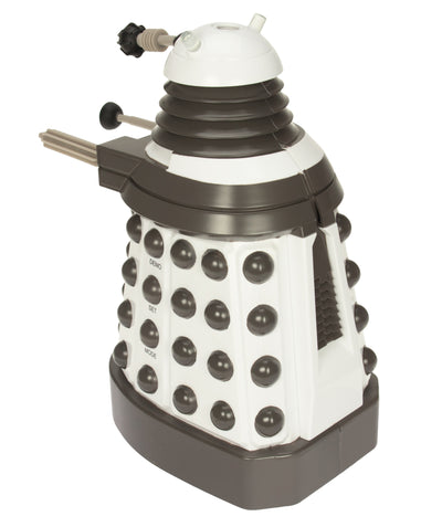 The Dalek projection alarm clock not only displays the time on its LED screen, but also projects it onto the ceiling in blue digits. You will be woken up by one of three typical Dalek sound effects: The "Exterminate!" exclamation, the incomparable locomotion sound or the weapon sound, while its lights flicker like lightning above and below.