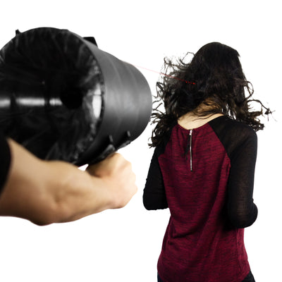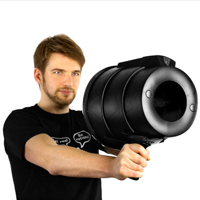 With the Airzooka, you can create "air balls" that you can shoot up to 15 meters away. For example, to really mess up someone's hair. Or to get the pile of papers on your colleague's desk moving a bit. :)