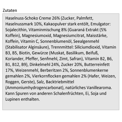As with all products with a high caffeine content, consumption by children, pregnant women and breastfeeding mothers is not recommended. Note for allergy sufferersThe cookies contain small amounts of milk as well as wheat and hazelnuts. The Mind Cookies are also suitable for a vegetarian diet.