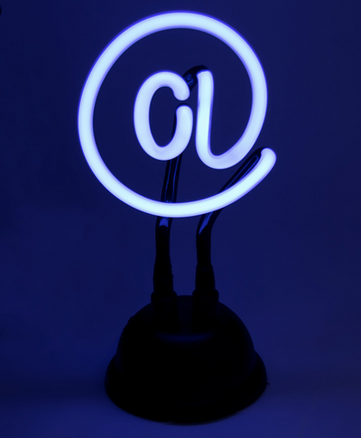 The neon lights come with @-signs or smiley motifs and are about 18cm high. The power supply is via your USB port and they have an on/off button.