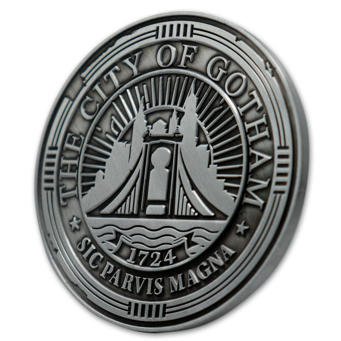 Allerdings führte es dazu, dass wir diese Batman Limited Edition Medaillen Gotham City ergattern konnten, die der Superheld bei jeder guten Tat für die Stadt erhalten hat, und sie an dich weitergeben können. Dank des mitgelieferten Display-Ständers kannst du die Medaille in deinem Sammlerregal oder deiner Vitrine stolz allen Gästen präsentieren. Sie zeigt die Skyline von Gotham, sowie das Gründungsdatum der Stadt und ihr Motto „Sic Parvis Magna“. Und wer weiß schon, was sich aus dem Besitz dieser kleinen Medaille noch Großes entwickelt… ;)