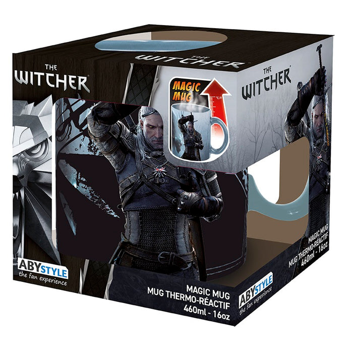 Im normalen, also kaltem, Zustand zeigt die Tasse Geralt und Ciri, sowie ein großes Hexer-Medaillon, das Symbol der Bruderschaft der Hexer. Ein solches Medaillon reagiert, sobald sein Träger in die Nähe eines magischen Wesens oder eines Monsters kommt. Und auf dieser Tasse ist das Monster näher, als es zunächst den Anschein hat!
